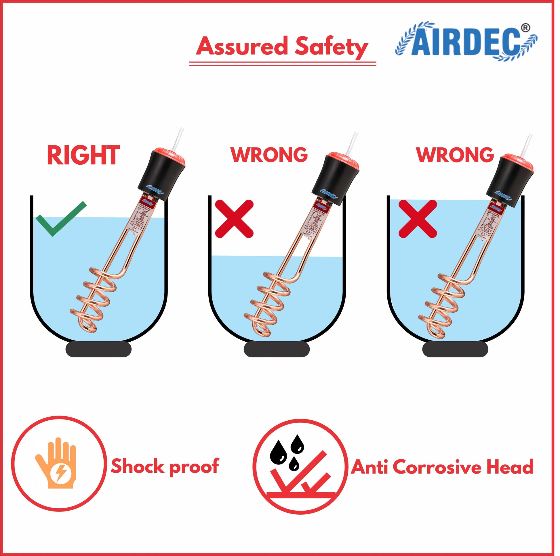 AIRDEC ISI Certified Water-Proof 1500 W Shock Proof Immersion Heater Rod (Water)